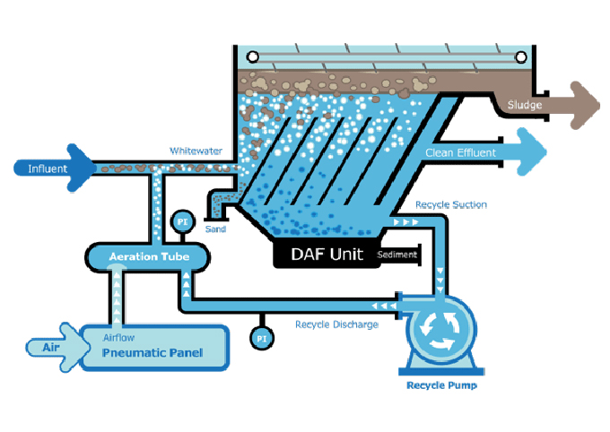 Then there's DAF. Instead of letting solids sink, it floats them up with tiny bubbles.