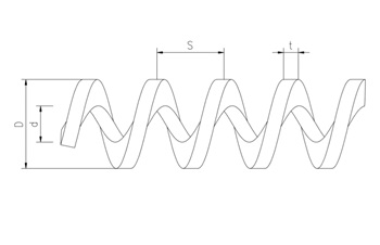 NO. Diámetro (D) Diámetro inferior (d) Altura de la hoja (c) Paso (S) Longitud (mm) Espesor (mm) Densidad (kg/m³) Peso (kg/m)