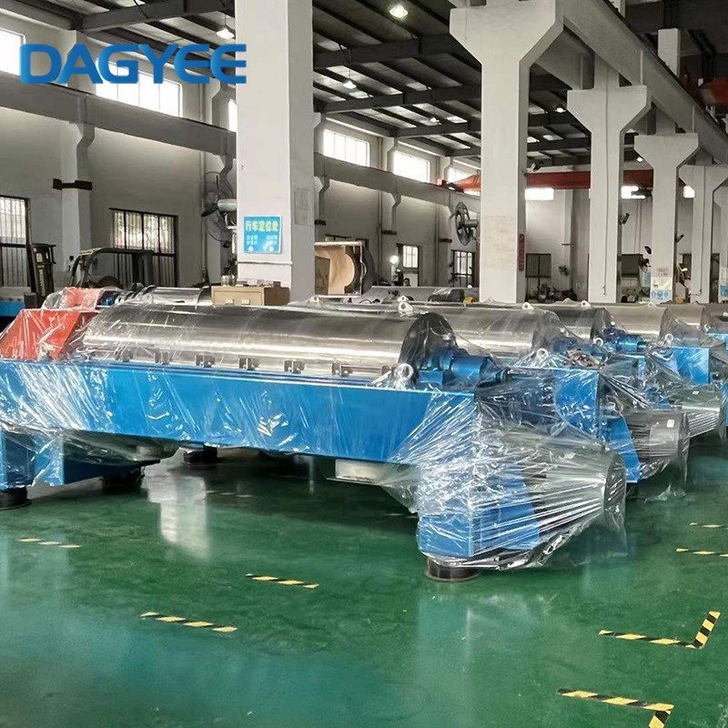 La centrífuga decantadora consta de varios componentes, incluyendo el sistema principal de accionamiento del motor, motor auxiliar, diferencial, transportador de tornillo, tambor, cubierta protectora, base, sistema de amortiguación, alojamiento de los rodamientos principales, sistema de lubricación, entre otros. DAGYEE SEPARATION se dedica a mantener un estricto control de calidad sobre los detalles del producto, asegurando que cada componente pase por un procesamiento preciso y exquisito.