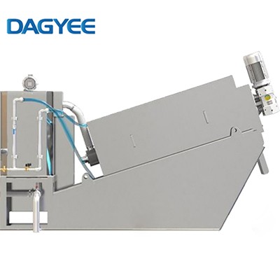 Deshidratación: El lodo espesado avanza continuamente desde la zona de espesamiento hacia la zona de deshidratación. Con el paso de la rosca del eje del tornillo cada vez más estrecho, la presión en la cámara del filtro aumenta cada vez más. Además de la presión generada por la placa de contrapresión, el lodo se presiona en gran medida y se producen tortas de lodo secador;
