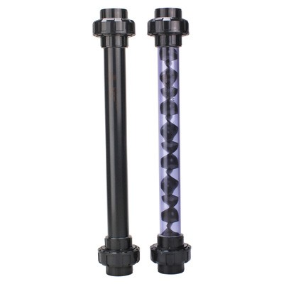 Los mezcladores estáticos UPVC tienen elementos de flujo que introducen dos corrientes de fluidos (o gases) en el mezclador estático. A medida que las corrientes se desplazan por el mezclador, los elementos inmóviles mezclan continuamente los materiales. La mezcla completa depende de muchas variables, como las propiedades de los fluidos, el diámetro interior del tubo, el número de elementos y su diseño. Los elementos fijos, normalmente helicoidales, del mezclador de elementos alojados pueden producir simultáneamente patrones de división del flujo y mezcla radial. También suministramos mezcladores estáticos transparentes que permiten supervisar el proceso y ayudan a optimizarlo, especialmente en sistemas de disolución en los que interviene una fase gaseosa.