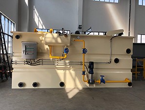El aire es enviado al tanque de almacenamiento de aire por el compresor de aire y luego llevado al tanque de aire por el dispositivo de chorro. El aire se disuelve fuertemente en agua bajo una presión de 0.35Mpa para formar agua de aire disuelto y luego se envía al tanque de flotación de aire. En el caso de una liberación repentina, el aire disuelto en el agua se disolverá y formará enormes microburbujas, que entrarán en contacto completo con la materia suspendida floculada en las aguas residuales. La materia suspendida será bombeada y floculada después de agregar el fármaco, y las microburbujas subirán. Los grupos serán adsorbidos en la materia suspendida floculada para reducir la densidad y flotar en la superficie del agua para lograr el propósito de remover SS y CODcr.