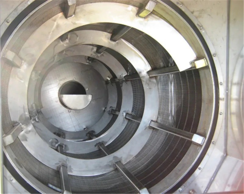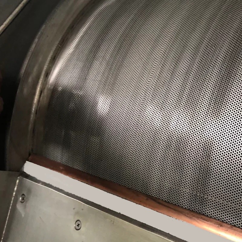 El interior del tambor de acero inoxidable está recubierto por una tela filtrante de malla fina que actúa como medio filtrante.