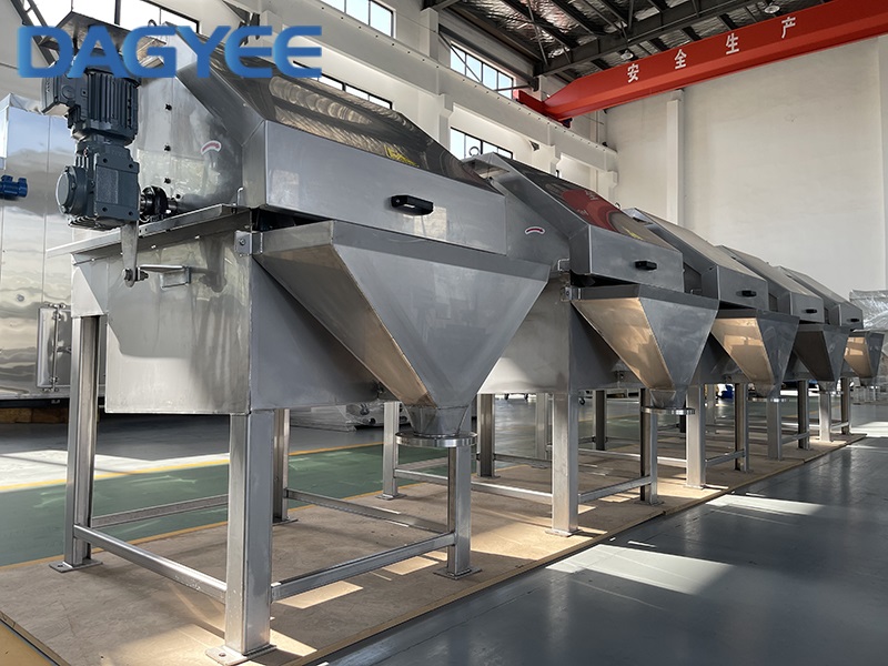 Con la rotación de la superficie del tambor, la suciedad atrapada se envía desde el extremo de entrada al extremo de descarga en el otro lado y se empuja hacia abajo mediante el mecanismo de descarga.