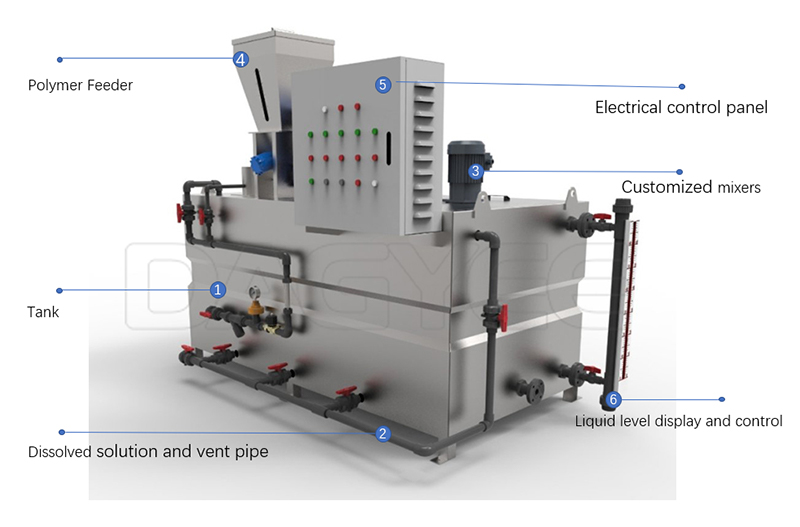 Химическая промышленность: различные потоки химических сточных вод, которые нуждаются в точной дозировке полимеров. Химические предприятия часто нуждаются в специальных материалах, таких как SS316 или FRP для обработки агрессивных сточных вод.