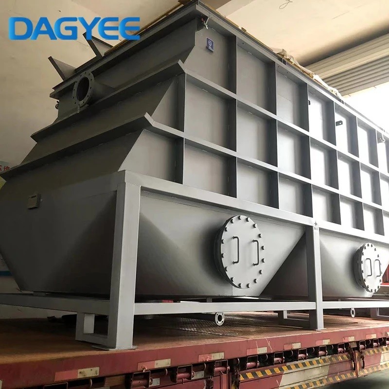 Осветлитель Dagyee Lamella - это эффективный комбинированный отстойник , В соответствии с разработанной мелкой теорией; в зоне проседания установлено множество плотных наклонных пластин, позволяющих взвешенным твердым веществам в сточных водах оседать на наклонной пластине. Вода поднимается и стекает по наклонной пластине. Отделенный ил под действием силы тяжести стекает по наклонной пластине на дно резервуара. Шлам можно сбрасывать в коллектор, который может увеличить производительность в 3-5 раз на той же площади. В соответствии с данными испытаний неочищенных сточных вод можно выбрать пылеуловители с различным расходом.