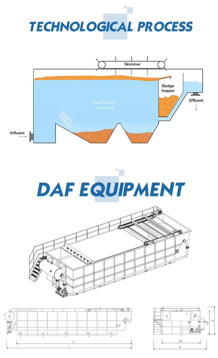 Старые методы всегда были седиментацией. Большие бетонные танки. Твердые вещества опускаются до дна. Он работает, но занимает много места, он медленный, и он не делает много для масла, жиров или тонких частиц.А вот и даф. Вместо того, чтобы позволить твердым веществам тонуть, они наполняются крошечными пузырями.