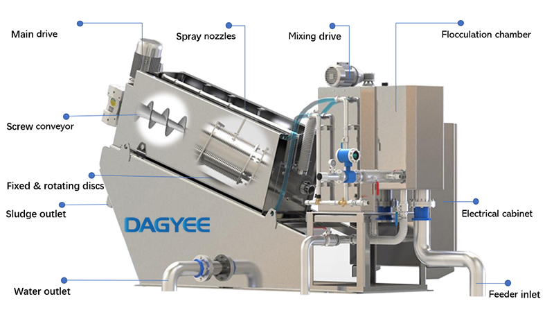 - Low Energy: Only 2-5 rpm, consuming 1/3 the energy of belt filter presses